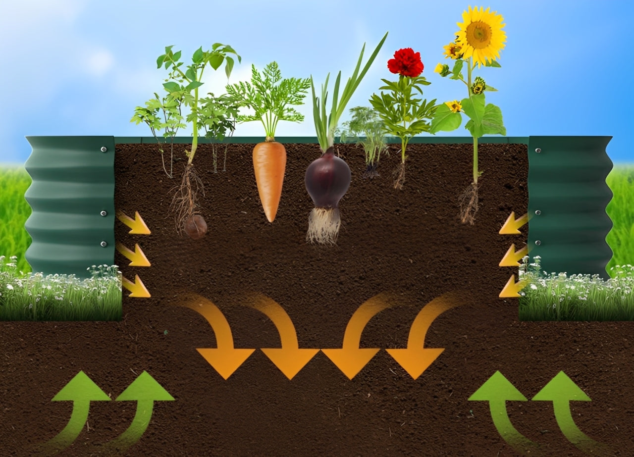 Erleben Sie eine neue Art des Gärtnerns mit unseren verzinkten Hochbeeten. Die bodenlose Konstruktion ermöglicht es den Pflanzen, ihre Wurzeln frei auszubreiten, fördert ein gesundes Wachstum und verbessert die natürliche Wasserableitung.